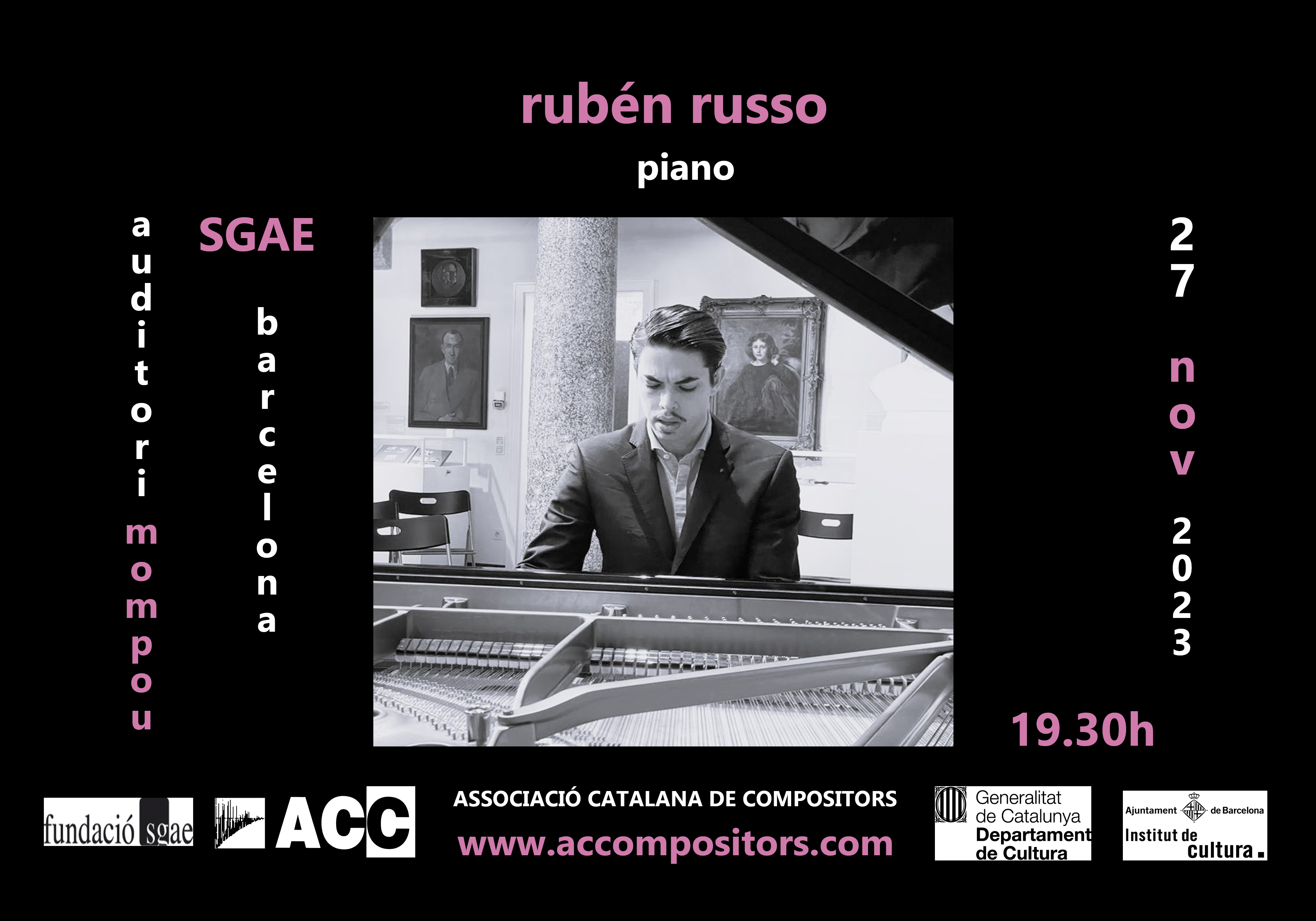El pasado 27 de noviembre se estrenó la obra para piano Impresión I en el Auditorio Mompou de Barcelona, con Ruben Russo como pianista. El concierto fue organizado por la ACC dentro del ciclo de música contemporánea que suele realizar la asociación todos los años. Para esta ocasión, la obra rinde homenaje a Scriabin -en conmemoración del 150 aniversario de su nacimiento- y trata de recuperar una estética posromántica personalizada con un cuidado tratamiento de la disonancia y la estructura. Inspirada en un poema breve del poeta y periodista sevillano Francisco Morón (poema I, Retales de un corazón triste, ed. Autografía, Barcelona 2019) Impresión I desarrolla el simbolismo de la ausencia como expresión asociada al dolor y la ira en las secciones extremas, o a la nostalgia y el amor en la sección central. El resultado busca un tono conmovedor, expresivo y temperamental que fue interpretado magistralmente por Ruben Russo. Paso enlace a la grabación en directo.