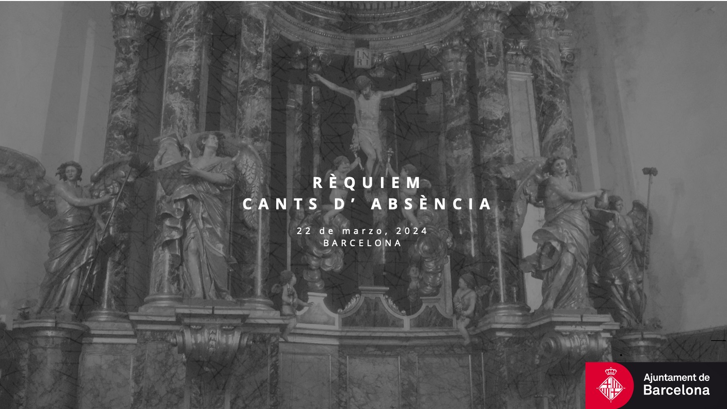 Rèquiem. Cants d’Absencia es una obra de encargo del Ayuntamiento de Barcelona que fue estrenada el 22 de marzo de 2024 en el Oratorio de San Felipe Neri en Barcelona. Realizada sobre textos que combinan la liturgia de difuntos con la poesía de Carles Duarte fue interpretada por el Coro de Cámara Nóctes con Maria Mauri como directora, Paola Ríos al violonchelo y Joan Seguí en el órgano. La acogida del público fue muy buena y el resultado constituye la primera referencia de gran formato de mi catálogo. Se adjunta grabación completa. El 16 de mayo de 2024 fue incorporada a los fondos del Oratorio de San Felipe Neri, en Barcelona.