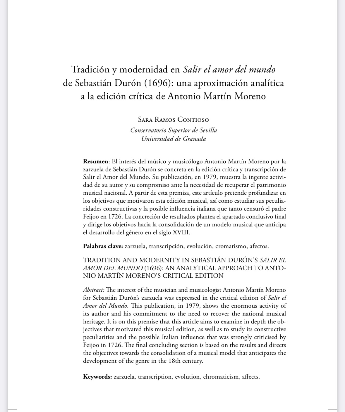 Precioso homenaje a mi querido Antonio Martín Moreno en la universidad de Granada. Presentación del libro Amor que vence a gigantes como tributo a toda una vida dedicada a la investigación y la musicología. El acto ha contado con representantes de los rectorados y decanatos de las universidades de Granada, Oviedo y UNIA, además de personalidades como Paolo Pinamonti o Reynaldo Fernández. El libro incluye un artículo mío sobre uno de los temas principales de estudio de Martín Moreno: Sebastián Durón y sus grandes aportaciones en el convulso período de finales del s. XVII. Texto íntegro en este PDF.